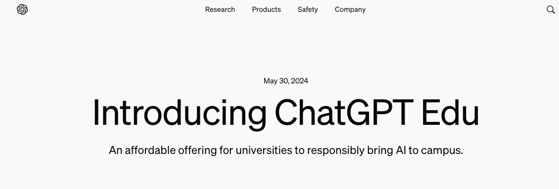 多知5月31日消息,OpenAI近日在官網(wǎng)宣布推出專為大學(xué)打造的“實惠”版本ChatGPT Edu,以幫助高等教育院校大規(guī)模應(yīng)用AI。