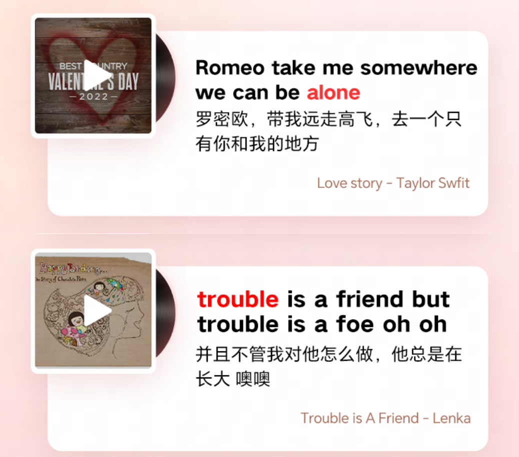 據(jù)介紹,有道詞典用戶在搜索單詞時,除了能夠查看原有的雙語例句外,還能聽到來自網(wǎng)易云音樂提供的英語歌曲例句。