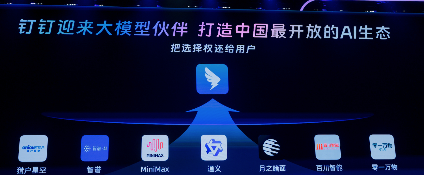 多知6月26日消息,“Make 2024釘釘生態(tài)大會(huì)”在北京舉辦。會(huì)上,釘釘宣布對(duì)所有大模型廠商開放,構(gòu)建中國最開放AI生態(tài)。除了通義大模型外,MiniMax、月之暗面、智譜AI、獵戶星空、零一萬物、百川智能六家大模型廠商已經(jīng)與釘釘達(dá)成合作。目前,釘釘生態(tài)伙伴總數(shù)超過5600家,其中AI 生態(tài)伙伴已經(jīng)超過100家;釘釘AI每天調(diào)用量超1000萬次。