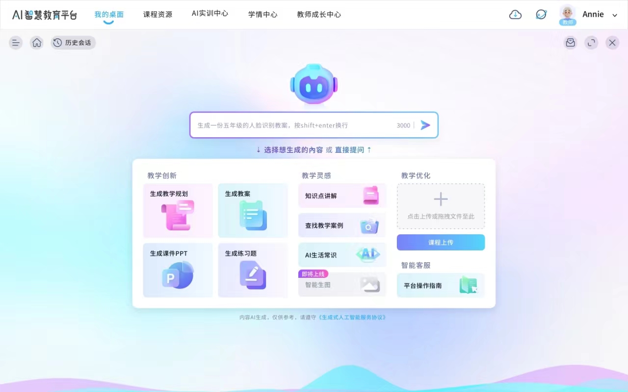 通過“AI+機器人/3D虛擬互動課程” 的方式為師生提供AI服務。