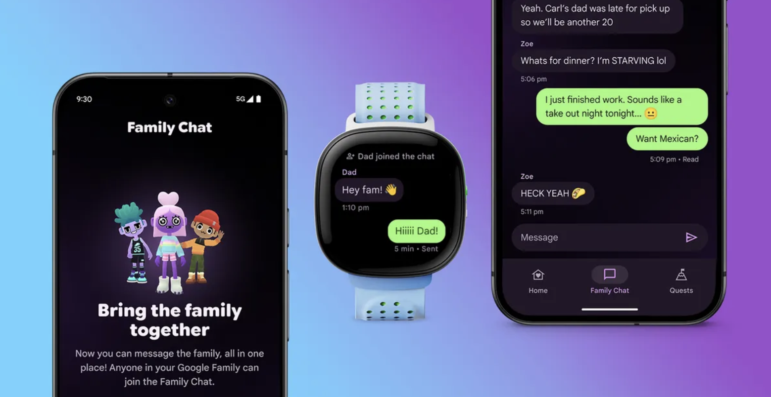 Fitbit 兒童手表添加家庭聊天和兄弟姐妹聊天功能。家庭聊天是全家人的群聊,兄弟姐妹現(xiàn)在可以互相發(fā)送消息或打電話。以前,這些功能并不能實(shí)現(xiàn)。