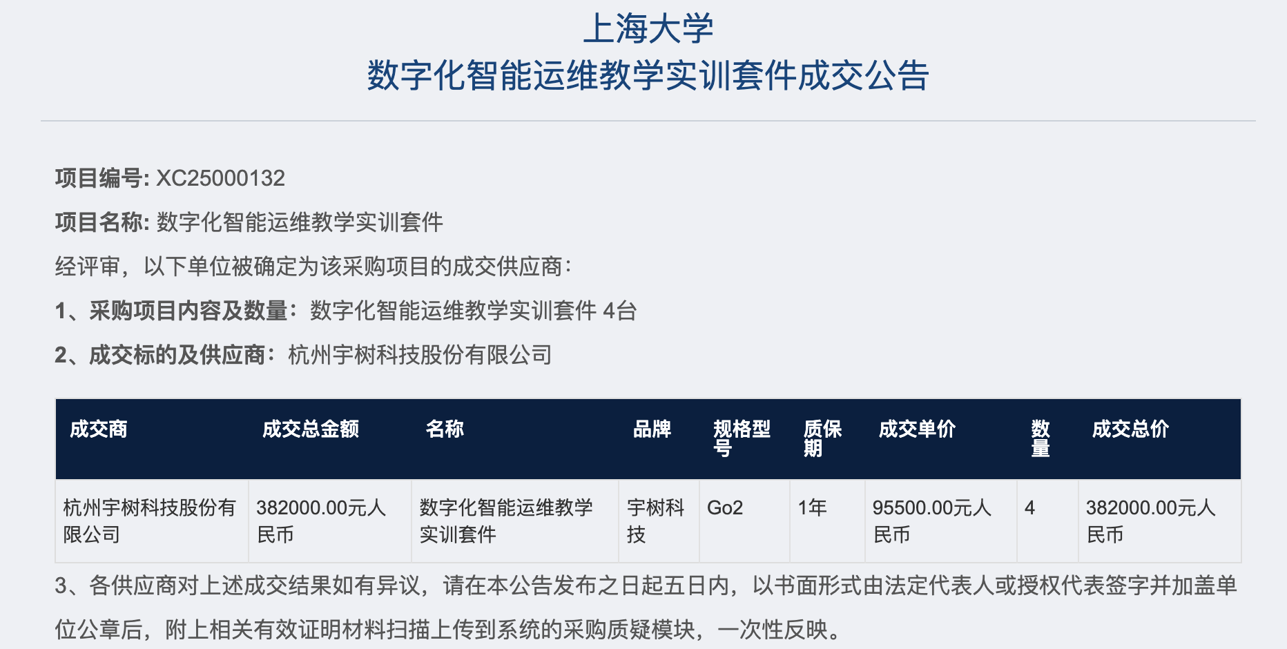 實際上,在宇樹科技還沒火之前,就和上海大學(xué)有合作。宇樹科技早在2024年9月就中標了上海大學(xué)分布式能耗管理實訓(xùn)系統(tǒng)項目, 當時提供的是Unitree G1 EDU機器人,該機器人專為教育、研究設(shè)計。上海大學(xué)采購了25套,總標的價格為92.5萬元。