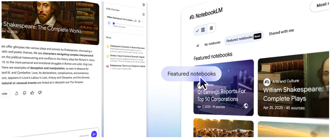 多知7月18日消息,近日,為提升用戶(hù)信息檢索效率,谷歌方面宣布,其正與全球的作家、研究人員、出版物和非營(yíng)利組織合作,在NotebookLM中打造“featured notebooks”(精選筆記本)。這些筆記本預(yù)裝了研究?jī)?nèi)容,并允許用戶(hù)與應(yīng)用的工具(包括 AI 播客制作器)進(jìn)行交互,以了解有關(guān)每個(gè)主題的更多信息。
