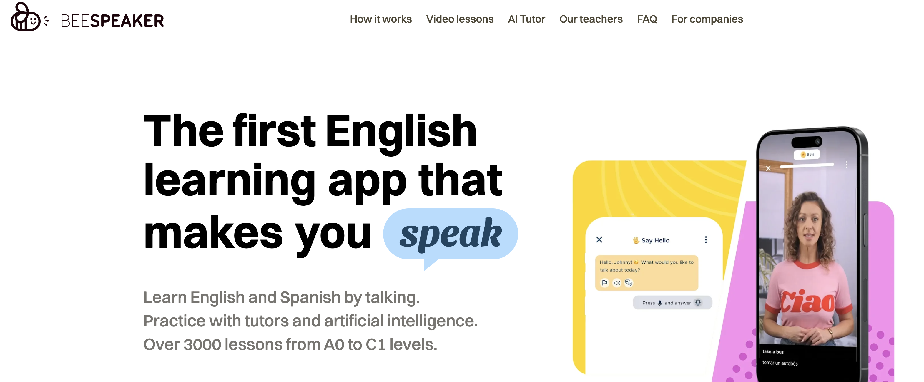 BeeSpeaker 就像一位私人導(dǎo)師,先播放母語人士的短視頻,然后進行口語練習(xí)。每個練習(xí)都要求用戶大聲朗讀,AI 會評估發(fā)音,進行對話式回復(fù),并根據(jù)每個學(xué)習(xí)者的進度調(diào)整難度。最終,用戶只需花費一小部分費用,就能獲得輔導(dǎo)級的口語練習(xí)。
