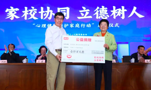 多知網(wǎng)11月14日消息,近日,在中國(guó)下一代教育基金會(huì)組織實(shí)施的“家校協(xié)同立德樹(shù)人”——心理健康守護(hù)家庭行動(dòng)啟動(dòng)儀式上,北京高途云集教育科技有限公司董事長(zhǎng)陳向東向中國(guó)下一代教育基金會(huì)捐款1000萬(wàn)元,用于提升家庭教育和兒童青少年心理健康水平。