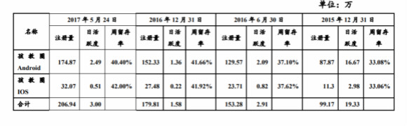 截止 2017 年 5 月 24 日,孩教圈 APP 的下載量為 1329萬次,孩教圈 APP 注冊量、日活躍度、留存率見下表: