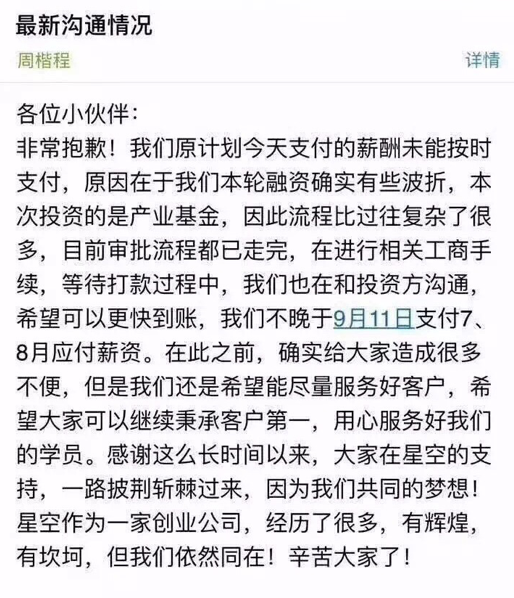 2、目前并沒有任何正式通知表明星空倒閉,投資人已經(jīng)直接介入決策,我們所有員工都在等待投資方的解決方案。
