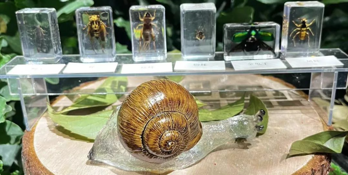 以《奇妙的昆蟲(chóng)之旅》這一主題為例,其盒子就包含六枚滴膠動(dòng)物標(biāo)本、一枚距今約1億年的蟲(chóng)珀、三只圓碟及一套制作蝴蝶標(biāo)本的裝置。這些頗有巧思的小物件,格外吸引孩子的目光。
