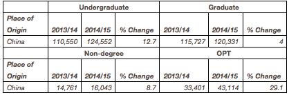 在14-15學(xué)年,來(lái)自于中國(guó)的申請(qǐng)數(shù)量下降了2%,并且從12-13年至今連續(xù)三年下降。申請(qǐng)的數(shù)量下降,至少說(shuō)明申請(qǐng)熱度的下降。雖然不敢說(shuō)一定最終14-15的入學(xué)數(shù)一定下降,但至少也說(shuō)明了不會(huì)有4% 這么多的增長(zhǎng)。