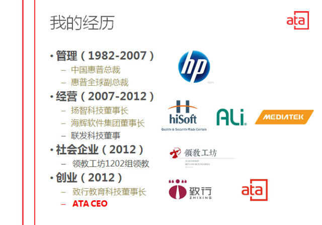 從大學三年級開始半工半讀到今天,我已經(jīng)工作了38年。在我的職業(yè)生涯里,一直到年紀很大的時候,才決定去追求我自己的夢想,那就是創(chuàng)業(yè)。為了創(chuàng)業(yè)我做了很多的工作,經(jīng)歷里有很多是和職業(yè)有關(guān),我分別擔任不同公司的董事長或者是董事,從了解和學習如何做一個管理者,到能夠做一個真正的經(jīng)營者。在學習這兩者的過程中,從思維到能力,我總是在調(diào)整自己,為創(chuàng)業(yè)做準備。
