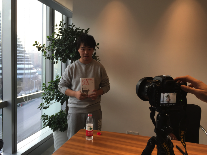 采訪的時候還在預售期,經銷商需要他拍一個小視頻,等書正式開售,放在首頁