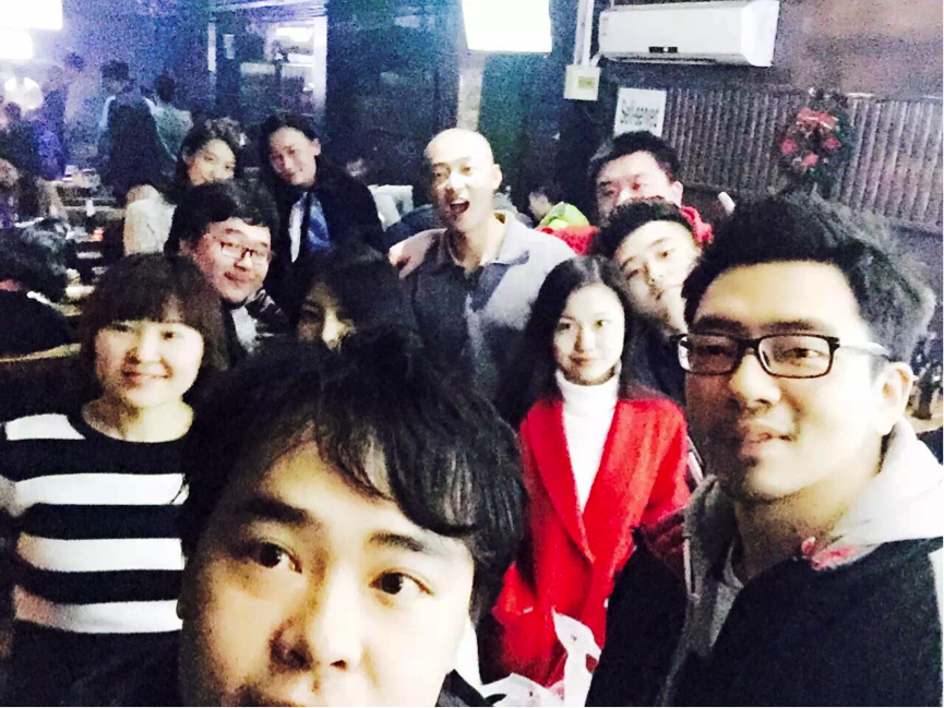 那晚,整個劇組的人去吃飯,從他后來放在朋友圈的照片,想到他曾說過的一句話“有酒就別少喝,有愛就別早撤”。