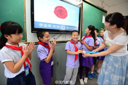 當(dāng)老師想要表揚或者批評某個學(xué)生的時候,只需要用這支教棒輕輕觸碰學(xué)生的學(xué)生卡,相應(yīng)的表揚或者批評的數(shù)據(jù)就可以實時在系統(tǒng)記錄,同時,更加“神奇”地,在老師的電腦屏幕上,還可以出現(xiàn)對應(yīng)操作的動畫效果。比如表揚他,可以在屏幕上出現(xiàn)一朵小紅花或者五角星。