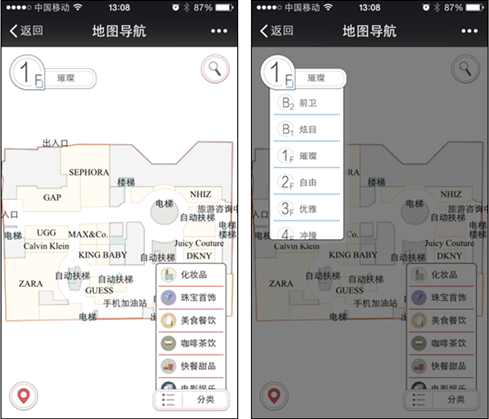 可以想象這樣的場(chǎng)景:關(guān)注西單大悅城的服務(wù)號(hào),當(dāng)你走進(jìn)西單大悅城,可以使用一鍵Wif上網(wǎng);打開(kāi)品牌導(dǎo)航,可以按樓層或品類尋找自己喜歡的品牌,也可直接搜索公共設(shè)施;搖一搖優(yōu)惠券,找到附近店鋪的優(yōu)惠活動(dòng);逛累了,打開(kāi)“排號(hào)”功能,在附近的餐廳“排號(hào)點(diǎn)餐”;在停車(chē)場(chǎng),你可以通過(guò)微信看到還剩多少車(chē)位,按照導(dǎo)航尋找到空閑的車(chē)位;離開(kāi)停車(chē)場(chǎng)時(shí),使用微信支付繳費(fèi)……