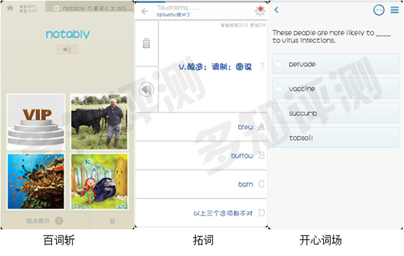 說明:為控制變量,本次測(cè)評(píng)均采用4.13安卓系統(tǒng)測(cè)試比較(新東方學(xué)詞測(cè)試環(huán)境為iOS6,無安卓版本),對(duì)托福詞匯進(jìn)行記憶。