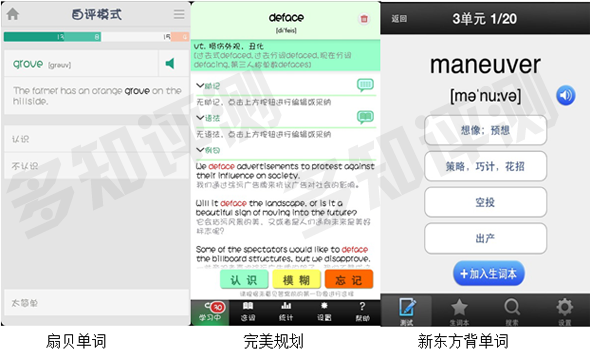 新東方背單詞:這款軟件是配合新東方權(quán)威出國考試詞庫的app,詞匯量很全很權(quán)威,每本單詞書都有個(gè)專門的app。不過功能較為簡(jiǎn)單,適合專注新東方紅寶書的童鞋們使用。(多知網(wǎng) 陳徹)