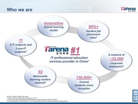 根據(jù)IDC的數(shù)據(jù),2013年的中國(guó)職業(yè)培訓(xùn)的市場(chǎng)規(guī)模是675億人民幣,其中IT培訓(xùn)的份額約11.4%(77億人民幣),達(dá)內(nèi) 有其中8.3%的市場(chǎng)份額;
