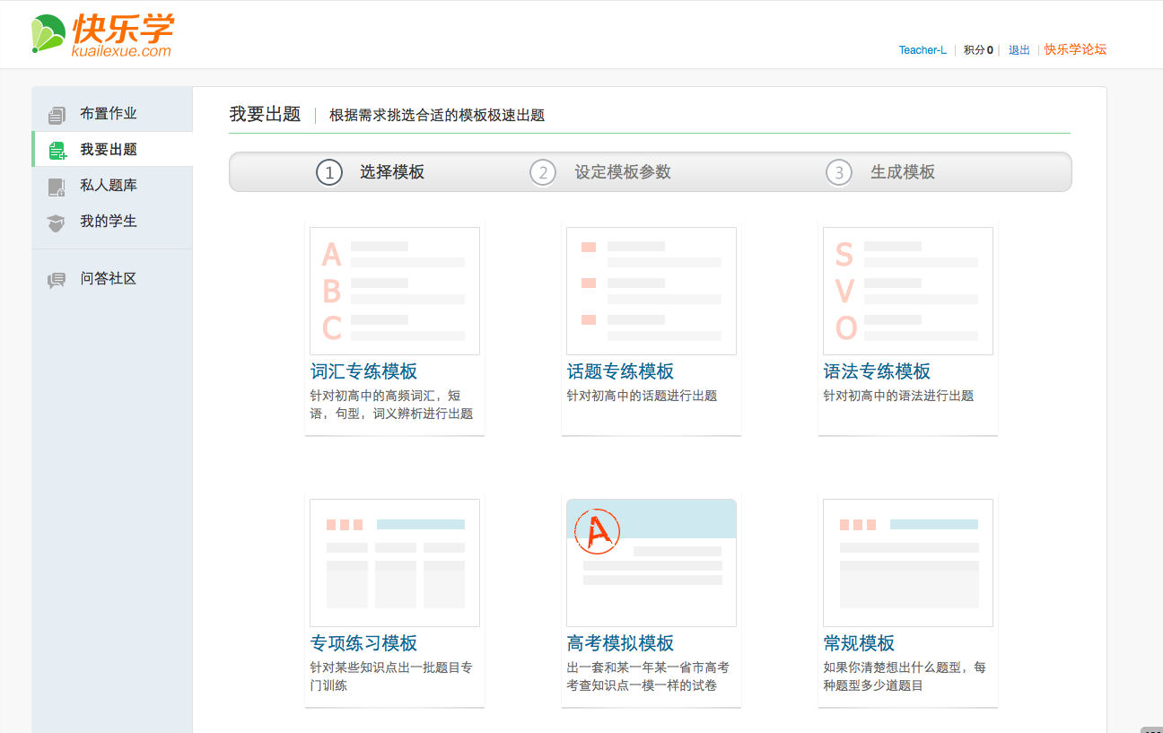 目前快樂學(xué)團隊正在著力開發(fā)教師端的產(chǎn)品上,想通過給老師提供好用的組卷工具來讓老師帶動學(xué)生一起使用該產(chǎn)品。而其現(xiàn)階段為教師用戶提供的功能有:作業(yè)題、試卷題的組卷,教師自己的私人題庫,以及向?qū)W生布置作業(yè)。值得一提的是,由于快樂學(xué)在最初就對題目數(shù)據(jù)進行了結(jié)構(gòu)化,因此可以讓老師用關(guān)鍵詞“搜索”式的方式出卷,比如在專項練習(xí)模板內(nèi),老師可以用知識點、難度來控制試卷內(nèi)容,同時可以用關(guān)鍵詞直接進行題目的篩選,搜索出包含這一關(guān)鍵詞考點的題目。而其高考模擬模板還可以出一套和某年某省市高考同考點、同等難度的試卷。
