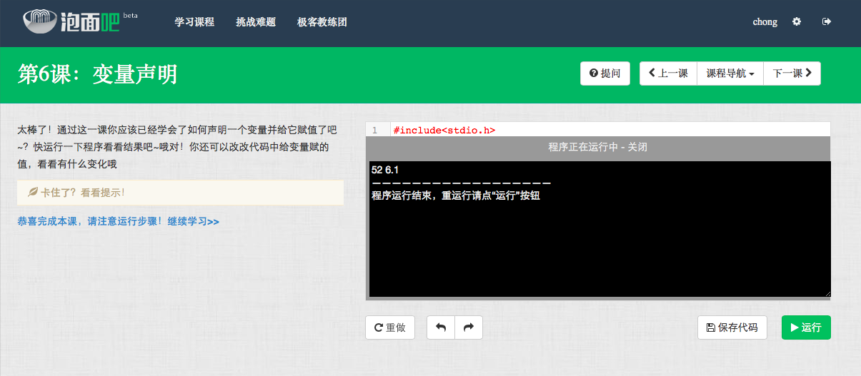 前兩天剛剛完成融資的“泡面吧”可以算是一家有成為中國版 Codecademy 野心的創(chuàng)業(yè)公司,他們也果斷拋棄了視頻教學這種過于重的方式,采取互動式的編程教學模式。