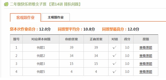 作業(yè)批改后會有專門的顯示頁面,其中包括孩子的成績排名和作業(yè)時間完成的排名(如圖3),提供競爭環(huán)境。
