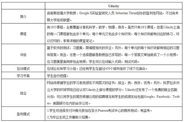Udacity是由Se-bastianThrun、DavidStavens和MikeSokolsky創(chuàng)建的營利組織,該組織也吸引了商業(yè)公司約2100萬美元的投資。目前,Udacity共有涉及四個學科的20多門網(wǎng)絡課程。這些課程將包含衡量課程掌握程度的積分系統(tǒng)等。