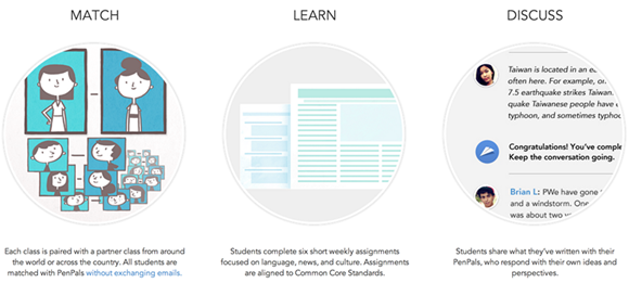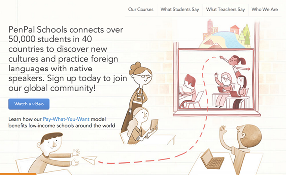 PenPal School是一個(gè)提供外語(yǔ)學(xué)習(xí)的在線教育平臺(tái),它為各個(gè)年齡段的學(xué)生提供6個(gè)星期的在線外語(yǔ)培訓(xùn)課程,課程內(nèi)容涵蓋多種外語(yǔ)學(xué)習(xí)的不同難度等級(jí)。但是與其他外語(yǔ)學(xué)習(xí)的在線教育平臺(tái)不同的是,PenPal School的在線平臺(tái)并沒有外語(yǔ)老師,而是在學(xué)習(xí)的最初為所有學(xué)習(xí)者一對(duì)一匹配了互聯(lián)網(wǎng)筆友,讓課堂再次衍生。