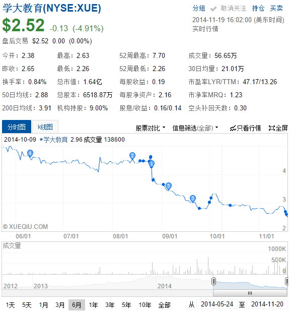 學大近6個月股價走勢圖 (圖片來源:雪球財經(jīng))