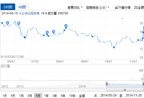 昨日,正保遠程教育發(fā)布截至9月30日的2014財年第四季度及全年未經(jīng)審計財報。財報發(fā)布后的首個交易日,收盤價報17.74美元,較上一個交易日收盤價大漲18.5%。