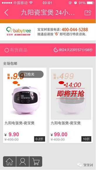 近日,母嬰服務平臺寶寶樹聯(lián)合九陽在寶寶樹旗下美囤媽媽電商平臺嘗試眾籌模式,第一次眾籌商品為瓷內(nèi)膽電飯鍋,定價9.9元。據(jù)官方稱,兩天時間后,訂單量超過5000單。