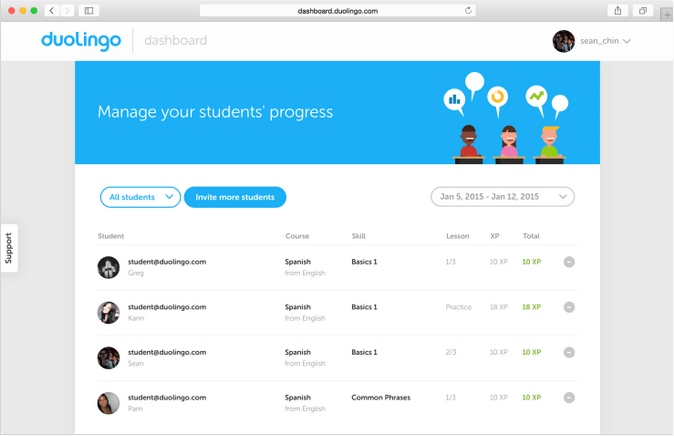 已經(jīng)有很多教師使用了該服務(wù),他們很高興能獲得這些學(xué)生學(xué)習(xí)的數(shù)據(jù)報(bào)告。有了教育版Duolingo,教師們能更容易地將該服務(wù)整合到他們的教學(xué)計(jì)劃中,當(dāng)作作業(yè)來安排或給在課堂外使用該服務(wù)的學(xué)習(xí)額外加分。