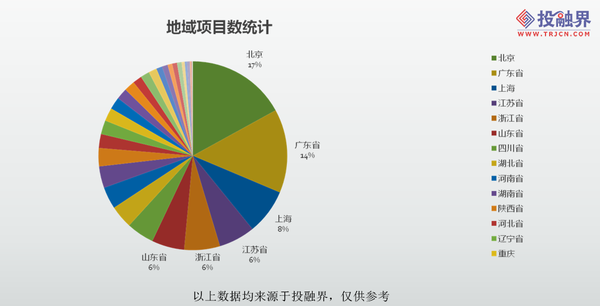數(shù)據(jù)顯示,北京、廣東、上海、江蘇、四川、河南、湖南、河北、重慶等多個省市均有涉及在線教育類項目,呈現(xiàn)出高度分散的市場特征。其中北京、廣東、上海、江蘇、浙江、山東居多,上述6省市占全部項目總數(shù)的57%。這一趨勢基本與各省市當(dāng)前的教育水平相吻合。