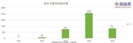 在線教育項目于2013年-2015年期間在平臺發(fā)布的項目數(shù)量呈現(xiàn)快速增長態(tài)勢,其中2015年前三個月的項目數(shù)量便超2013年全年總量,平均每天有9個在線教育項目在平臺發(fā)布。