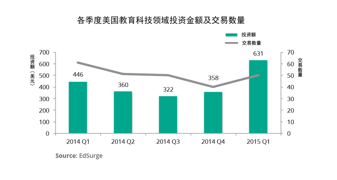 這兩家教育科技公司都在K-12之外。事實(shí)上,K-12領(lǐng)域的投資金額在第一季度較2014年同期減少了60%。