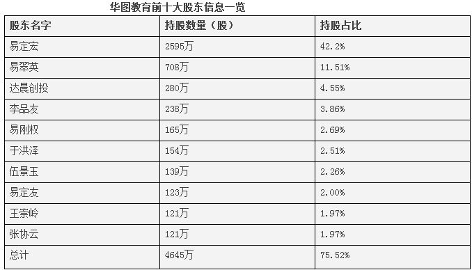 華圖教育的大股東名單背后,透露著培訓行業(yè)典型的草莽時代的印記——個人英雄主義、家族主義、兄弟情義。所謂的個人英雄主義,毫無疑問是指易定宏,盡管后來股份一再被稀釋,現(xiàn)在易定宏也仍然高達42%。如果加上易翠英(易定宏之姐)、伍景玉(易定宏之妻),則整個易氏家族的持股份額超過56%。當然,無論是對李品友這樣出生入死的兄弟,還是于洪澤這樣半路殺出的合伙人,易定宏至少還算是義氣相投吧。