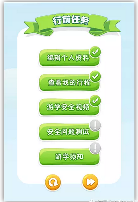 游學(xué)APP在設(shè)計(jì)時(shí),根據(jù)每個(gè)孩子的游學(xué)安排,從出團(tuán)前到在境外期間,設(shè)計(jì)了一系列游學(xué)任務(wù)。游學(xué)任務(wù)涵蓋的范圍包括行前的安全準(zhǔn)備、目的國(guó)文化知識(shí)學(xué)習(xí)、寄宿家庭交流、游學(xué)感觸與思考等,任務(wù)的種類也是多種多樣,包括結(jié)交國(guó)際小伙伴、世界歷史我知道、中國(guó)文化小大使、中外課堂大不同等等。