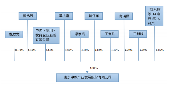 中教產(chǎn)業(yè)公司股權(quán)結(jié)構(gòu)如下圖所示: