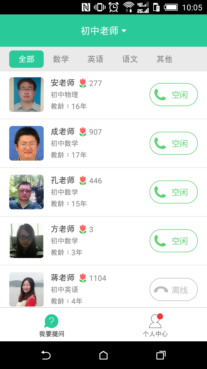 呼叫老師APP覆蓋了小學(xué)高年級(jí)和初中的課程。小學(xué)主要是語(yǔ)文、數(shù)學(xué)、英語(yǔ)三門課目,初中的課目包括了語(yǔ)文、數(shù)學(xué)、英語(yǔ)、物理、化學(xué)。