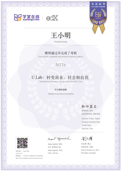 學生申請證書認證后,在學堂在線上完成身份記錄,提交考核結果驗證身份,最終成績達到及格即可申請領取證書,除電子證書外,還會為學生郵寄紙質證書。