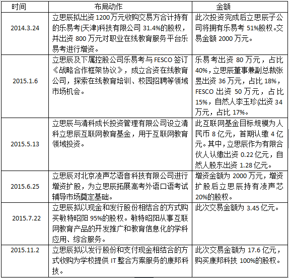 先來看下2014年、2015年兩年,立思辰在教育行業(yè)的布局。