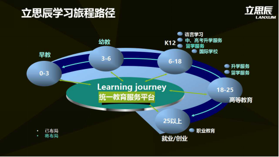 如上圖,圖中右側(cè)就是立思辰選擇的賽道,也是立思辰核心的戰(zhàn)略業(yè)務(wù)板塊,包括升學(xué)服務(wù)、職業(yè)教育、國際教育。在國際教育板塊中,立思辰會重點(diǎn)布局國際學(xué)校、語言學(xué)習(xí)、留學(xué)服務(wù)。黃威稱,上述的三大業(yè)務(wù)板塊之間是相互關(guān)聯(lián)的,這種關(guān)聯(lián)可以形成高效的業(yè)務(wù)協(xié)同。但是這些業(yè)務(wù)協(xié)同還不夠,最后要形成一個立思辰互聯(lián)網(wǎng)教育服務(wù)平臺,這一平臺將在明年實(shí)現(xiàn)。屆時(shí),平臺上用戶會獲取所有立思辰所提供的的教育服務(wù)。