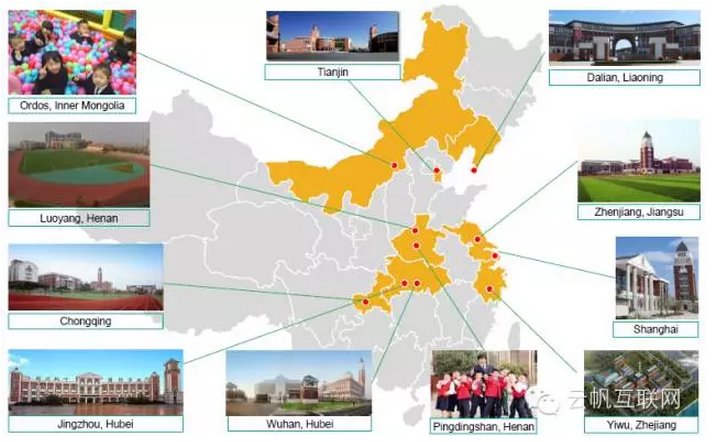 圖為楓葉國(guó)際在國(guó)內(nèi)的校區(qū)分布圖