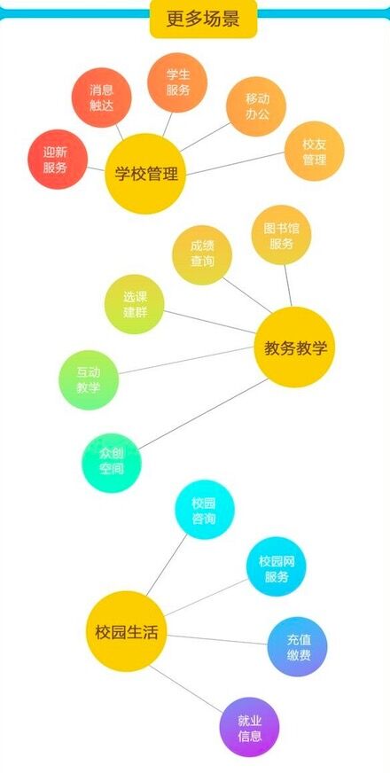 校園生活總,校園號可以滿足就業(yè)信息、充值繳費、校園網(wǎng)服務(wù)、校園資訊、校車服務(wù)等。