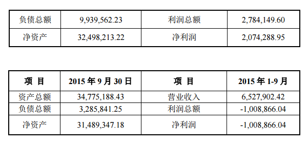 公告顯示,人民今典在2014年、2015年1-9月的營(yíng)業(yè)收入分別為1860萬(wàn)元和653萬(wàn)元。具體數(shù)額如下表所示: