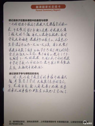 第三點需求是,是張華預先設置的,但沒想到效果超出預期 。在五次課程中,其中一次是畢業(yè)于哈佛的外教直播上課。家長覺得,外教用英文講,有中文PPT做輔助,孩子可以跟得上,未來孩子要留學,可以提前體驗國外的項目式學習。