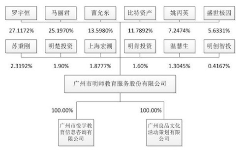 曹允東持有明師教育13.60%的股份,公司的股權(quán)結(jié)構(gòu)如下: