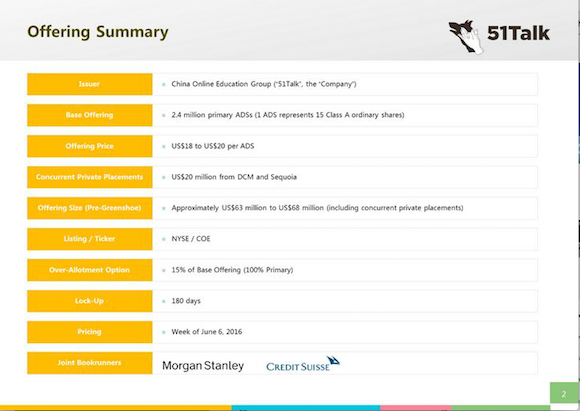 發(fā)行摘要,主要是羅列一些數(shù)據(jù),交代基本信息,比如本次發(fā)行240萬股ADS(每股ADS等于15股普通股),發(fā)行價(jià)為每ADS18-20美元,另外,紅杉和DCM共認(rèn)購(gòu)了2000萬美元,超額配售選擇權(quán)為15%,限售時(shí)間為180天。