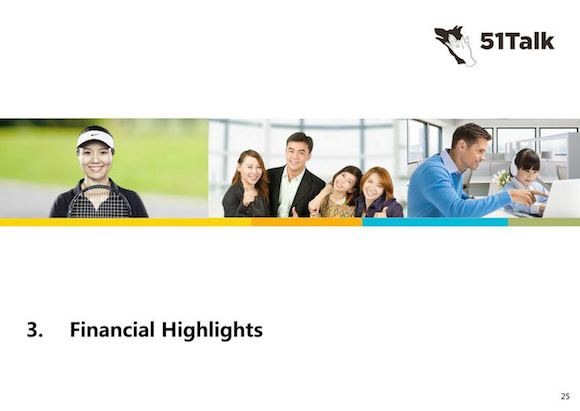 多知網(wǎng)6月6日消息,日前,51Talk發(fā)布路演PPT,之前,有關(guān)51Talk赴美IPO的基本財(cái)務(wù)信息等數(shù)據(jù)多知網(wǎng)已經(jīng)做了報(bào)道,其中存在一些如虧損嚴(yán)重、規(guī)模不經(jīng)濟(jì)的問題,那么,在這種情況下,路演要怎么講?現(xiàn)在多知網(wǎng)就帶領(lǐng)大家看一下這份路演PPT的內(nèi)容。