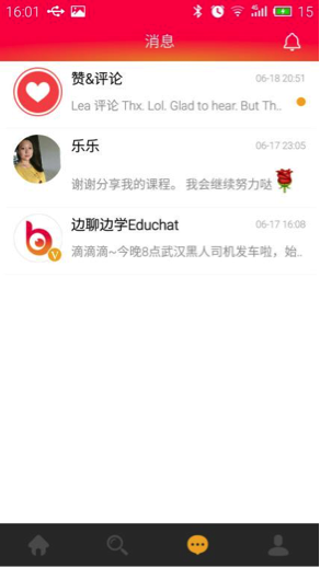 從上圖可以看到,消息頁可以接收來自官方的推送和用戶的贊、評論等,具備了用文字和語音聊天的社交屬性,方便了用戶之間的交流。