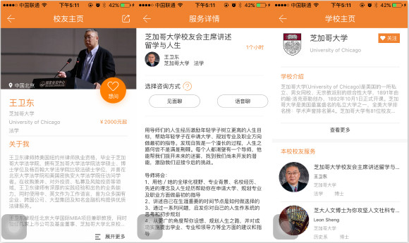 問校友類似留學(xué)領(lǐng)域的“在行”,希望為留學(xué)學(xué)生與其關(guān)注的大學(xué)校友建立直接交流的平臺(tái),可以看到,在APP中,多是類似“康奈爾JD博士與你分享法學(xué)院的申請(qǐng)心得”的話題,學(xué)生可以選擇見面聊或語音聊兩種方式與校友取得聯(lián)系,目前,問校友的收費(fèi)大多為600元/小時(shí)起。