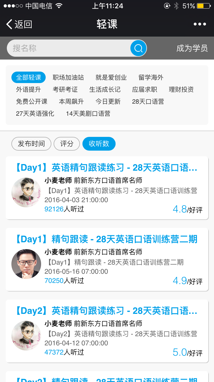 輕課是基于移動(dòng)端,通過(guò)網(wǎng)紅名師、社群、直播的方式,定位名師直播大課教學(xué)+微信群小班互動(dòng)的在線教育產(chǎn)品,目前專(zhuān)注在英語(yǔ)領(lǐng)域,其用戶(hù)主要定位于即將畢業(yè)的學(xué)生和畢業(yè)四年內(nèi)的職場(chǎng)新人。